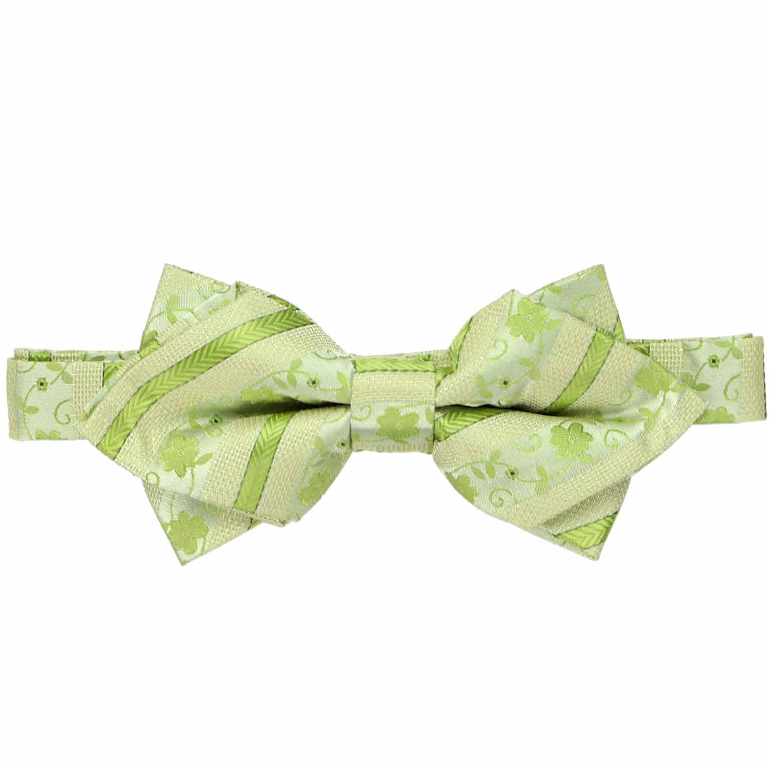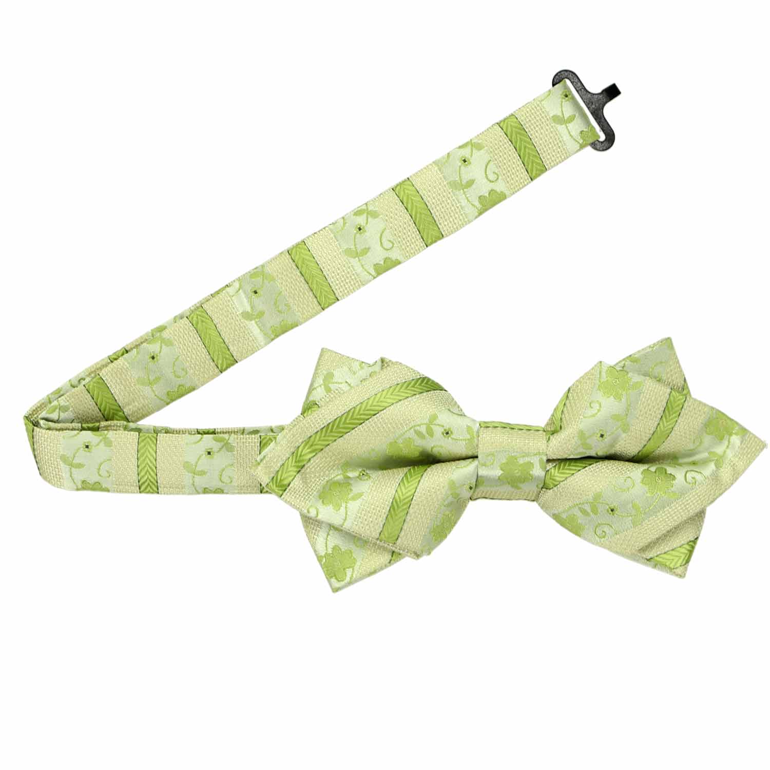 Brighten up your spring and summer wardrobe with this exclusive apple green floral striped diamond tip bow tie. Perfect for the season, its charming blend of floral vine and textured stripe patterns brings a fresh, cheerful touch to your look. Love the vibrant pattern? It’s also available in a self-tie bow tie and a coordinating pocket square, offering plenty of ways to complete your warm-weather style with elegance and ease!
