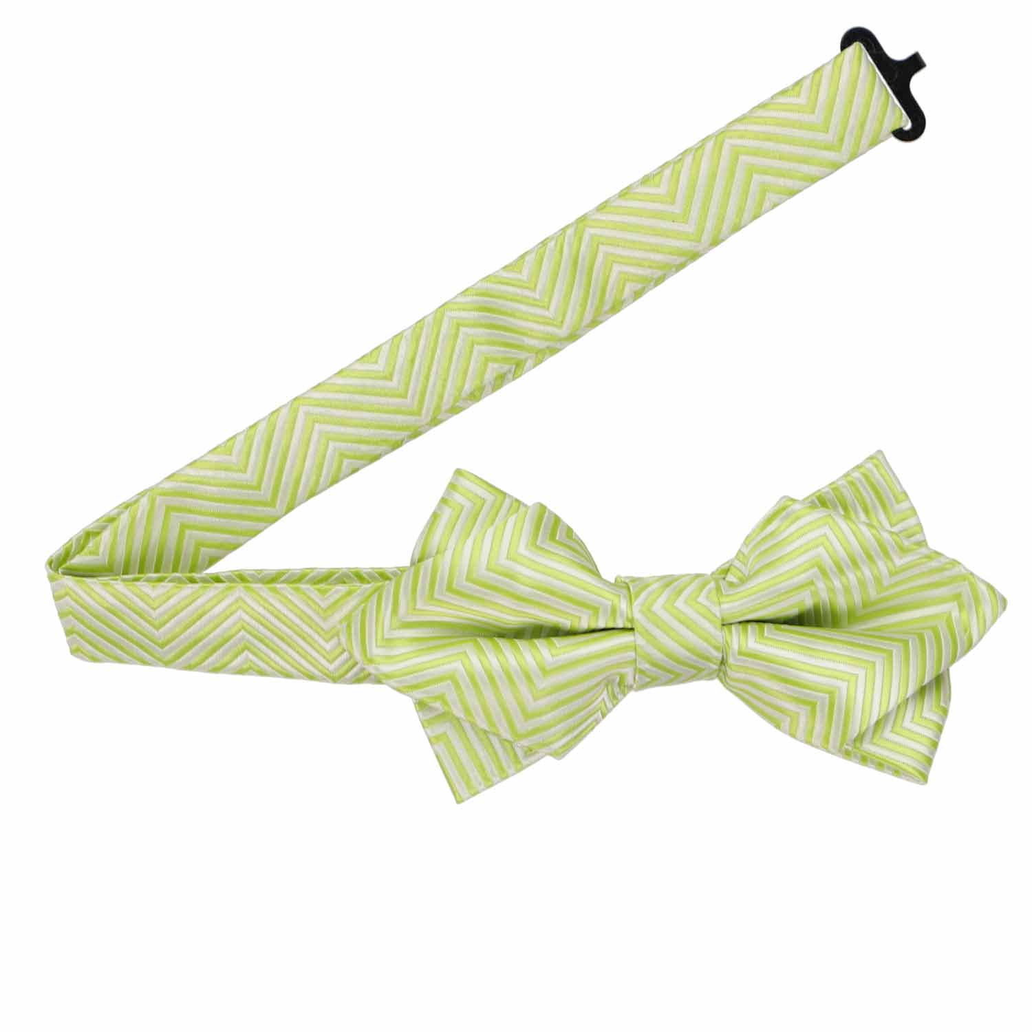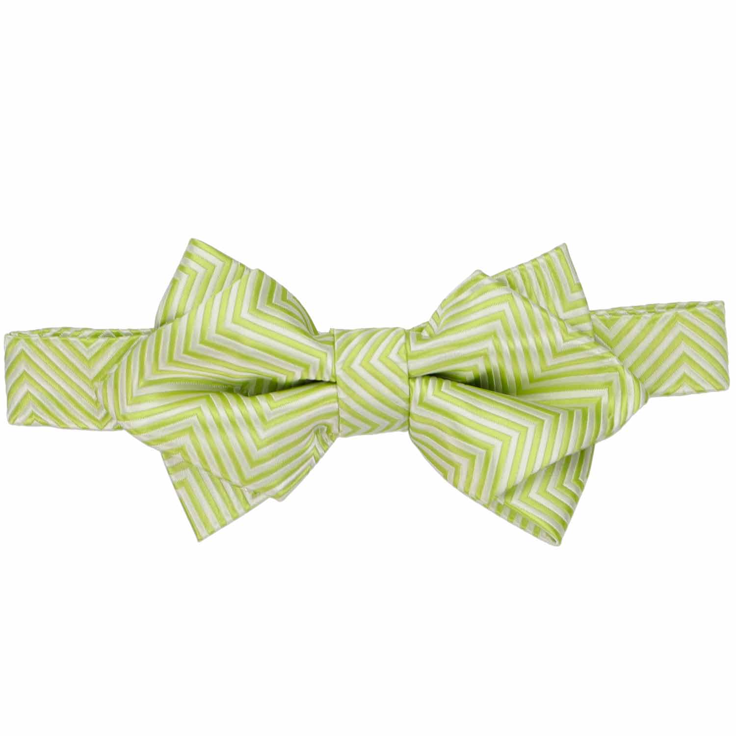 Add a pop of fresh energy to your wardrobe with this bright apple green chevron pattern diamond tip bow tie. Perfect for spring and summer, its vibrant color and dynamic design make it a fashion-forward statement piece. Whether you're dressing up for the office or attending an outdoor wedding, this bow tie effortlessly injects personality into any outfit while maintaining a refined sophistication. Complete the look with the matching pocket square for a polished finish, ensuring you're perfectly styled for both formal and semi-formal occasions.