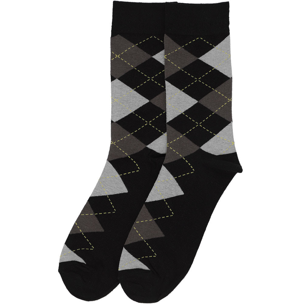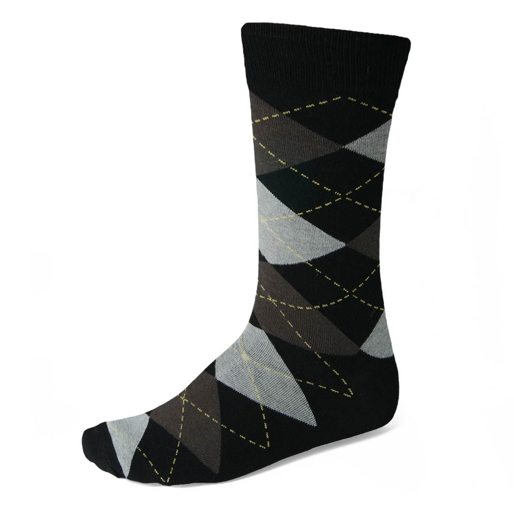 Argyle is such a classic pattern when it comes to men's socks, and that's especially true in this neutral black and gray color combination. (We couldn't resist and added a small splash of color with the yellow piping.) These are argyle socks every man should have in his work wardrobe, but we love them for elegant groomsmen socks, too.