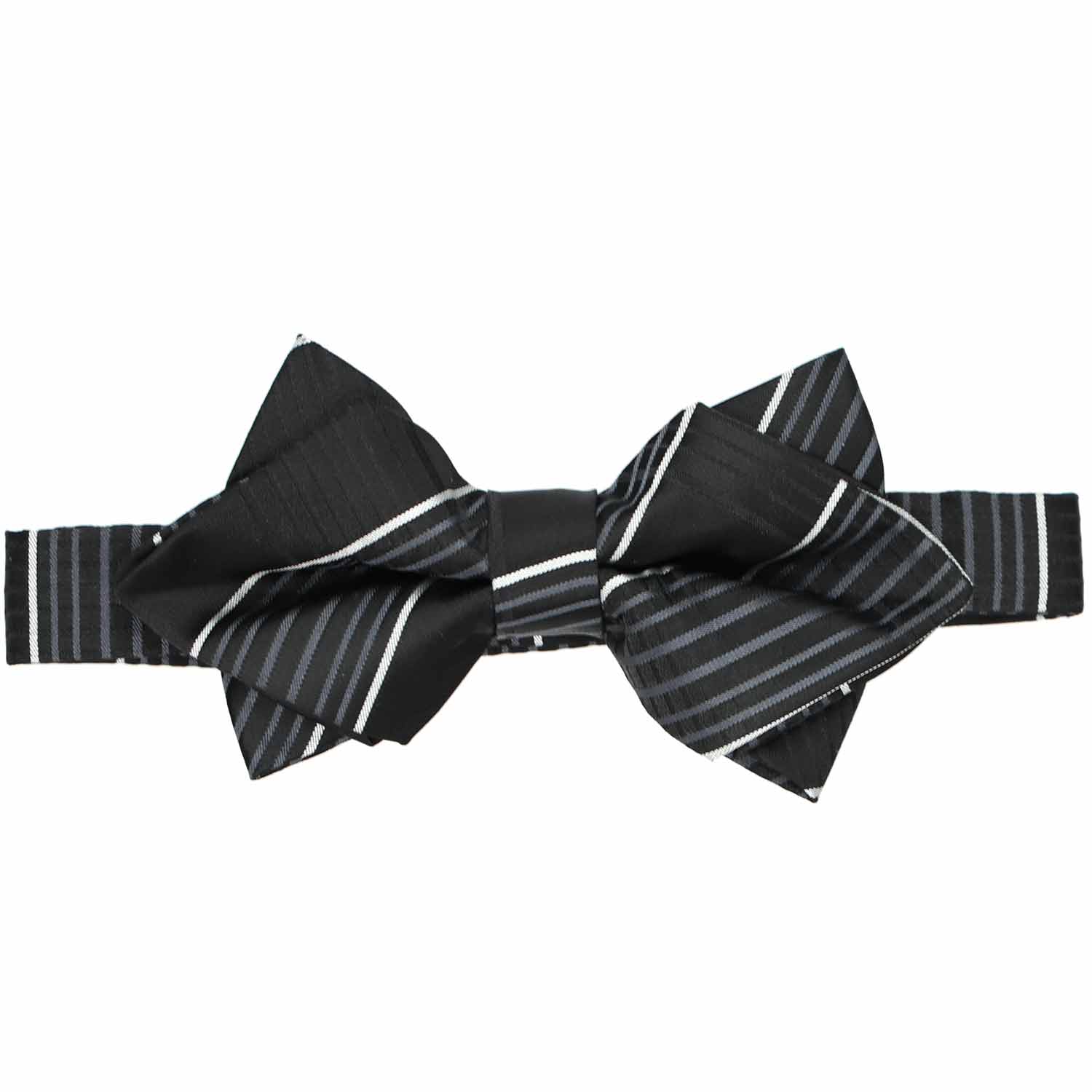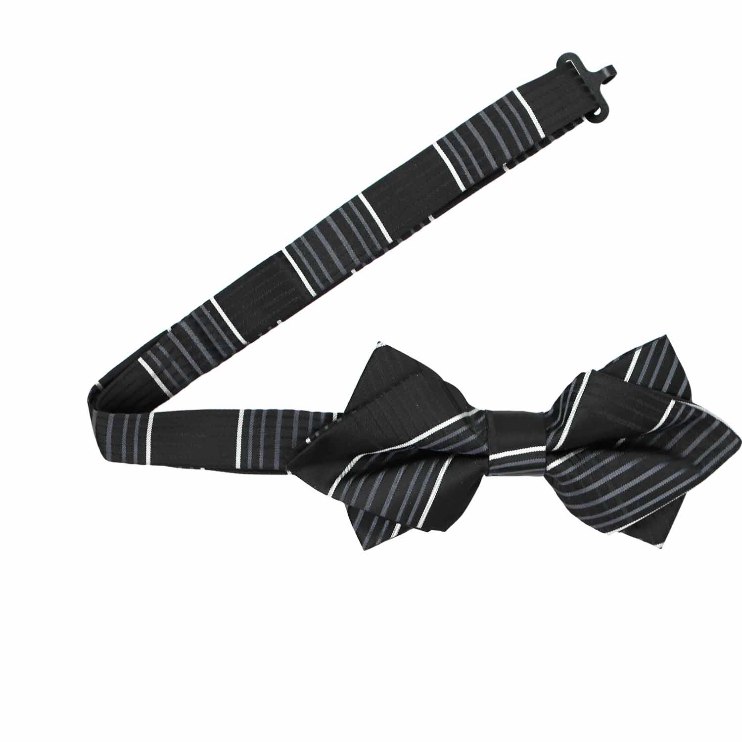 This diamond tip bow tie features sleek diamond-shaped tips in the front and classic bow tips in the back. Pre-tied for your convenience, it has an adjustable band collar that fits teens and adults with neck sizes from 12 to 21-inches. (The bow is an average size when worn.) Made from durable, textured polyester.