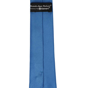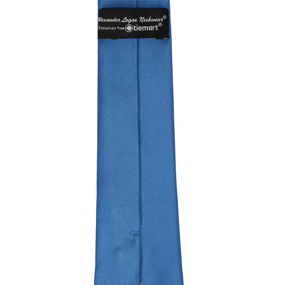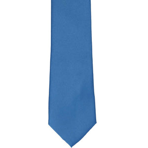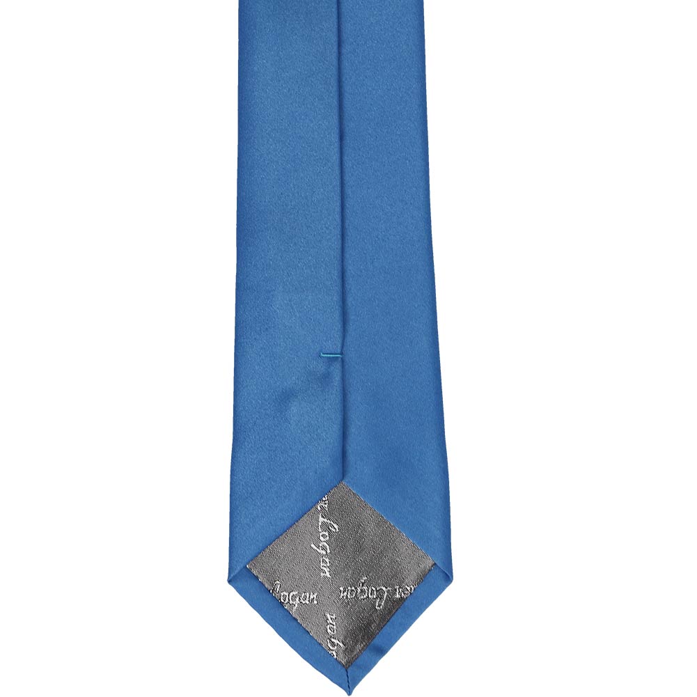 This slim blue necktie provides a subtly trendy look without going too skinny. The approximate 2.5-inch width measures 0.5-inches wider than today's ultra-trendy skinny ties, but about 1-inch skinnier than a traditional men's tie. The in-between width makes it a popular necktie for fashionably outfitting a large group of different sized adults or teens.