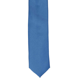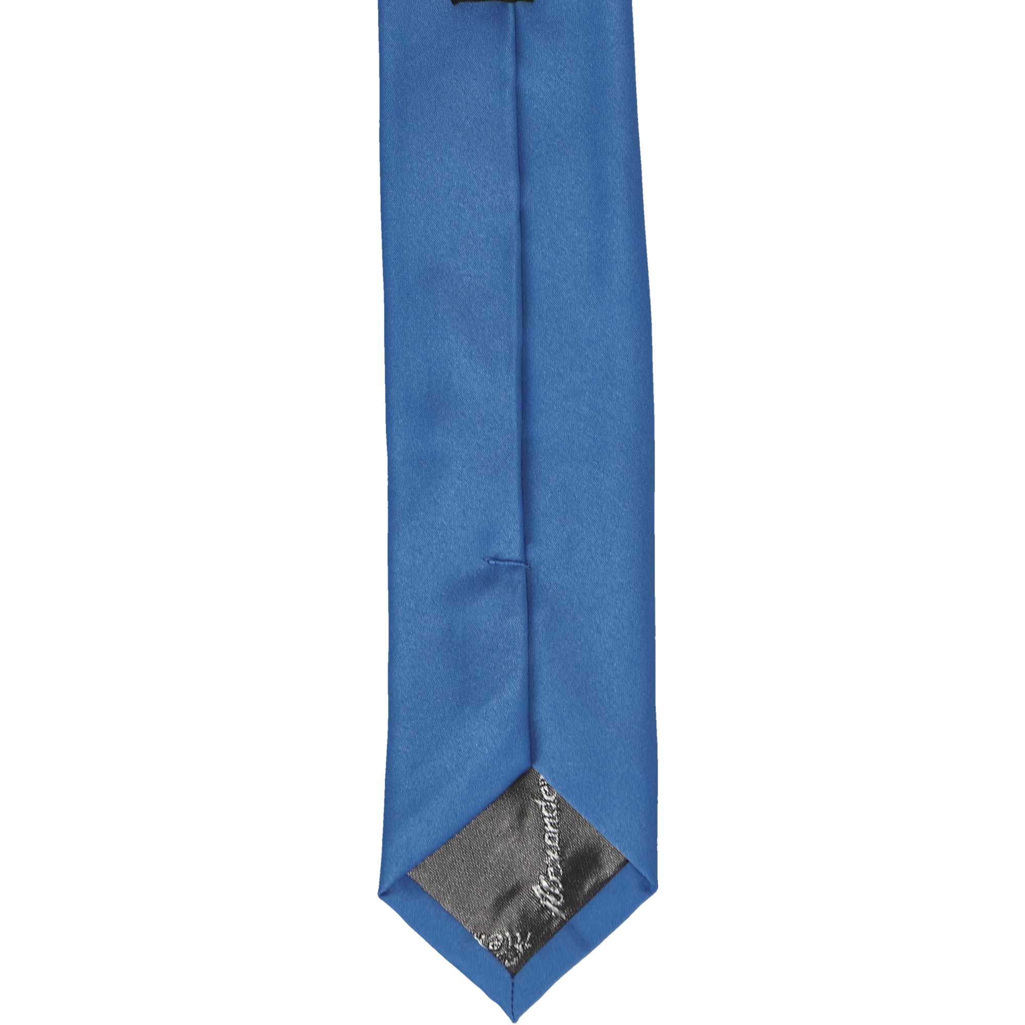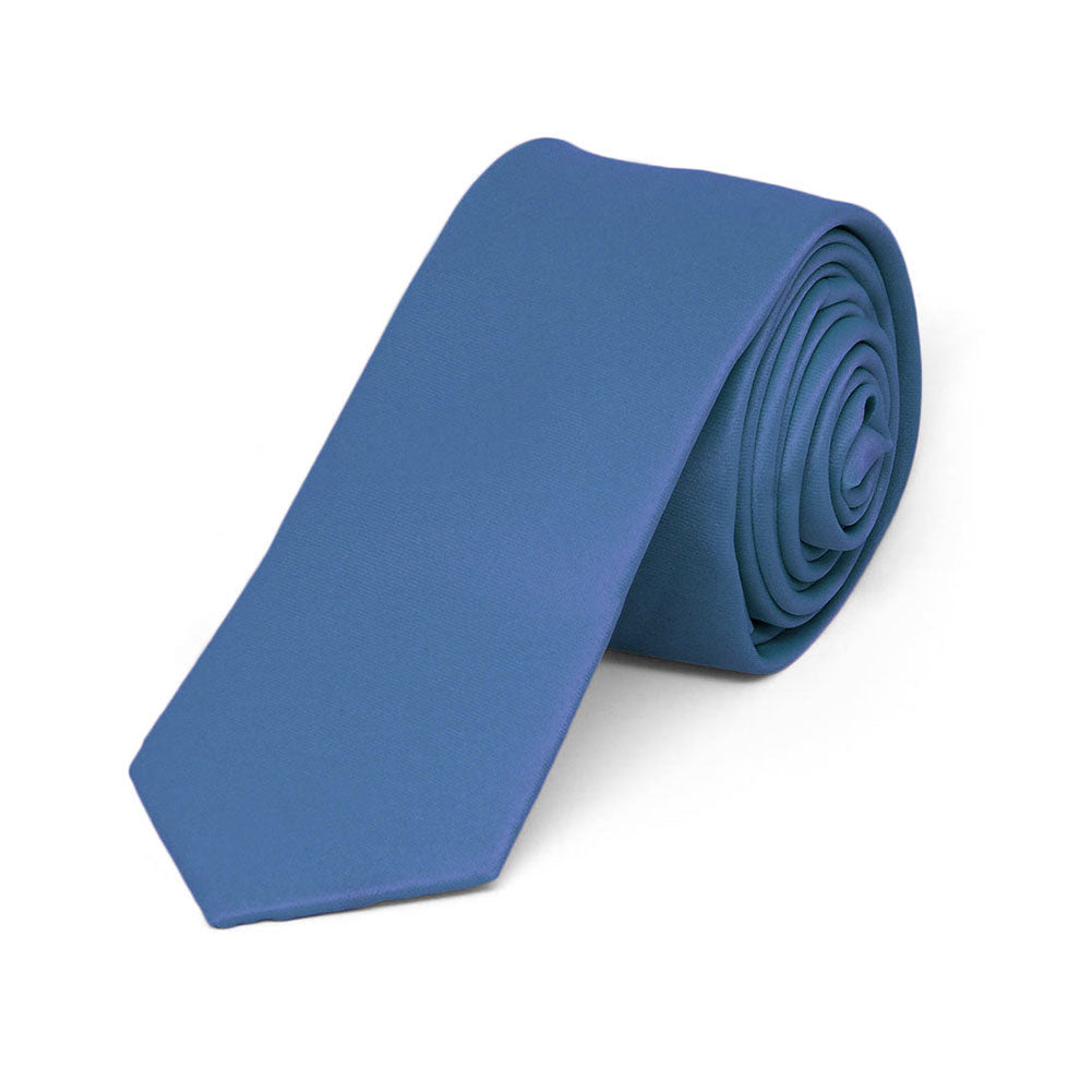 Perfect for young trendsetters! This trendy, 2 inch wide skinny tie is sized to fit most boys 8 to 13 years old. The child ties this tie himself, just like a grownup. Designed to match our men's blue skinny ties. Made from 100% polyester with a light satin finish.