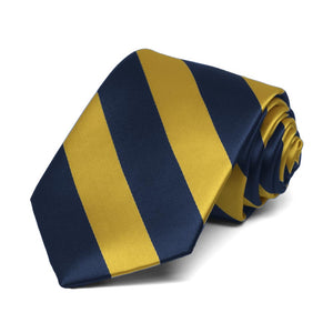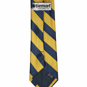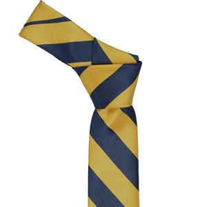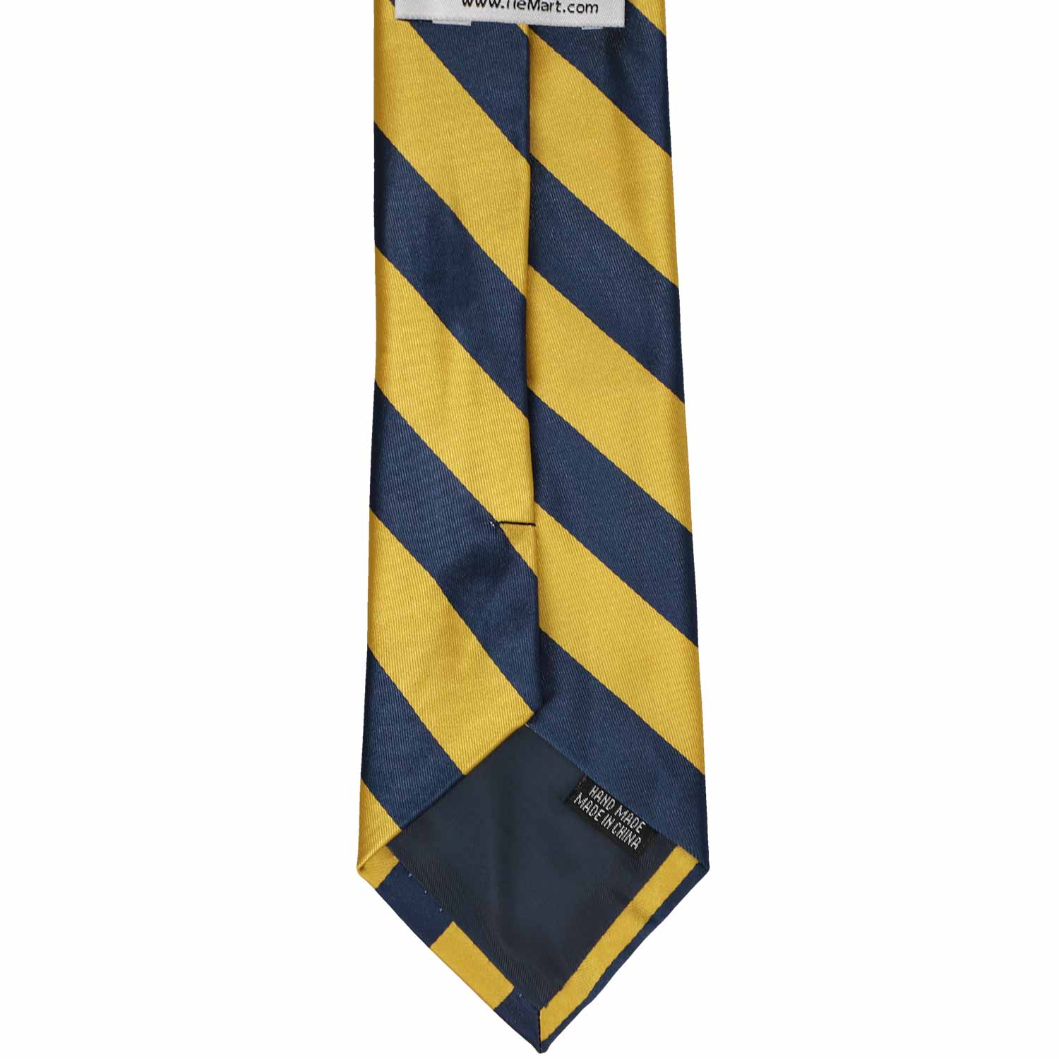 Help him master the collegiate look with this popular navy blue and gold bar striped boys' necktie. It's perfect for a button-down and slacks school uniform, but its sharp appearance means he can easily pair it with suits for formal ceremonies. He'll feel the confidence of a grownup when he successfully ties this necktie himself.