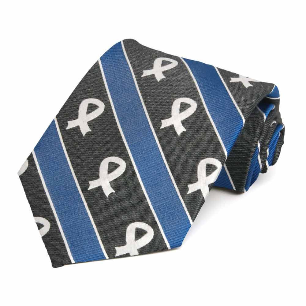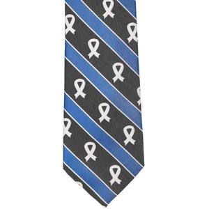 Show your support with this Lung Cancer Awareness cotton/silk extra long necktie. It features white ribbons on a black background with blue and white ribbed stripes. Made from a heavyweight, woven blend of cotton and silk and cut to a 3.5-inch width and 63-inch length for big and/or tall men. More styles available.