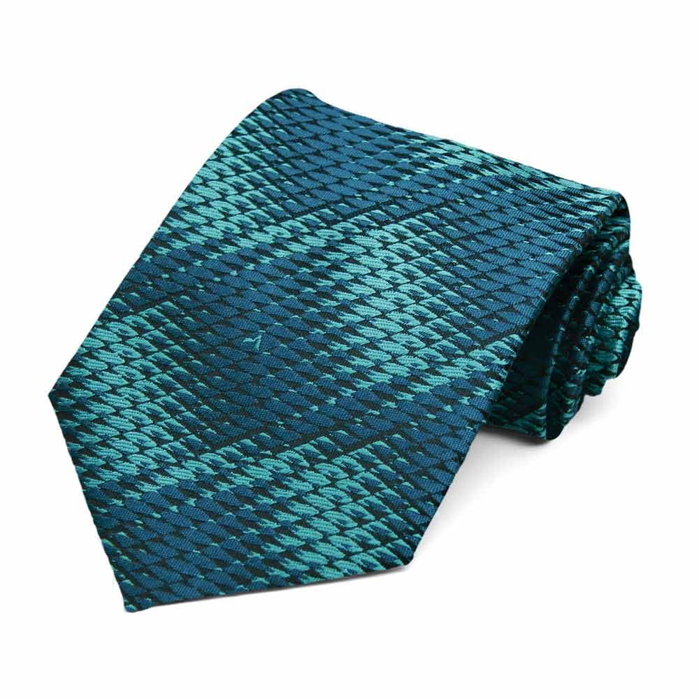 This caribbean blue geometric necktie is so versatile. Pair it with a navy blue, tan, or black suit and the included matching pocket square for a formal look. Great for everyday wear at the office when worn with khakis and a crisp, white dress shirt.