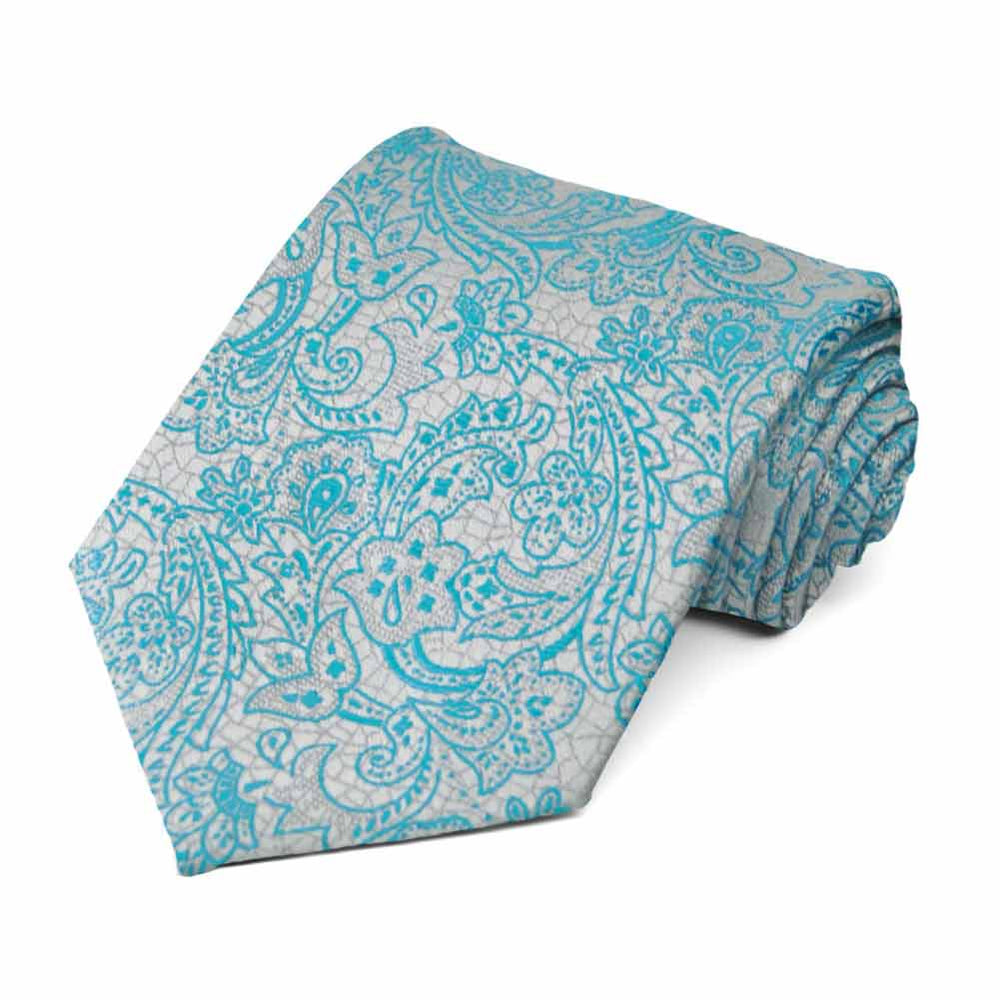 Add a subtle pop of color to your attire with this turquoise and silver floral print tie. Pair it with a white or pale blue shirt for work, or a navy blue suit and the included matching pocket square for a formal event. Spring or summer, this is sure to become a favorite addition to your wardrobe.