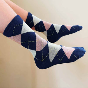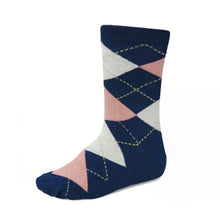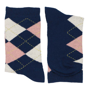 Boys' Navy Blue and Blush Pink Argyle Socks