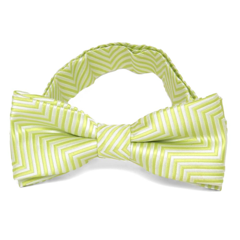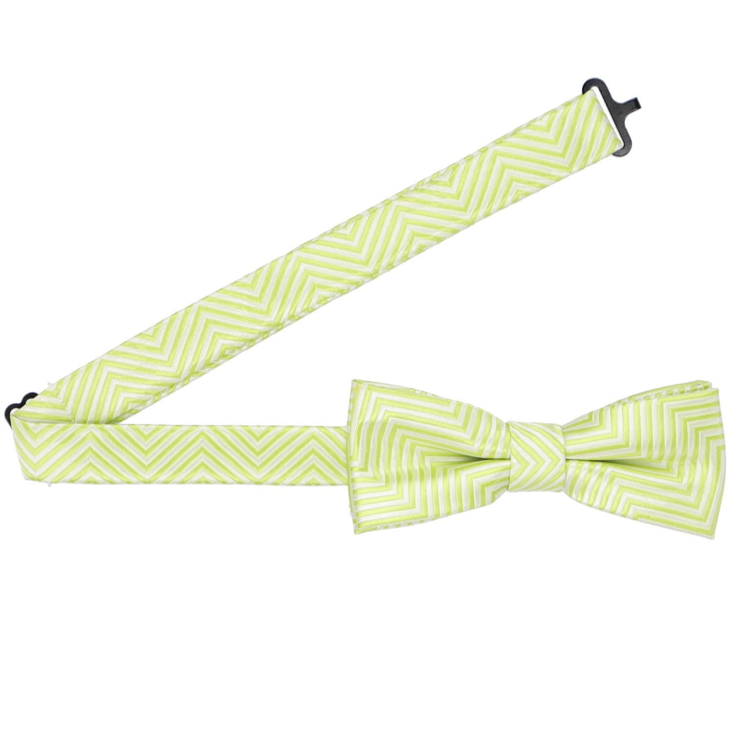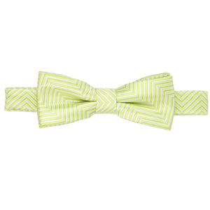 Add a pop of cheerful color to his wardrobe with this vibrant boys' apple green chevron bow tie! Perfect for spring and summer, it’s a fun yet sophisticated accessory for everything from family photos to outdoor weddings. The bold pattern brings personality to any outfit, while the versatile hue pairs effortlessly with a variety of suits. Ideal for both formal and semi-formal occasions.