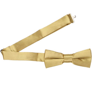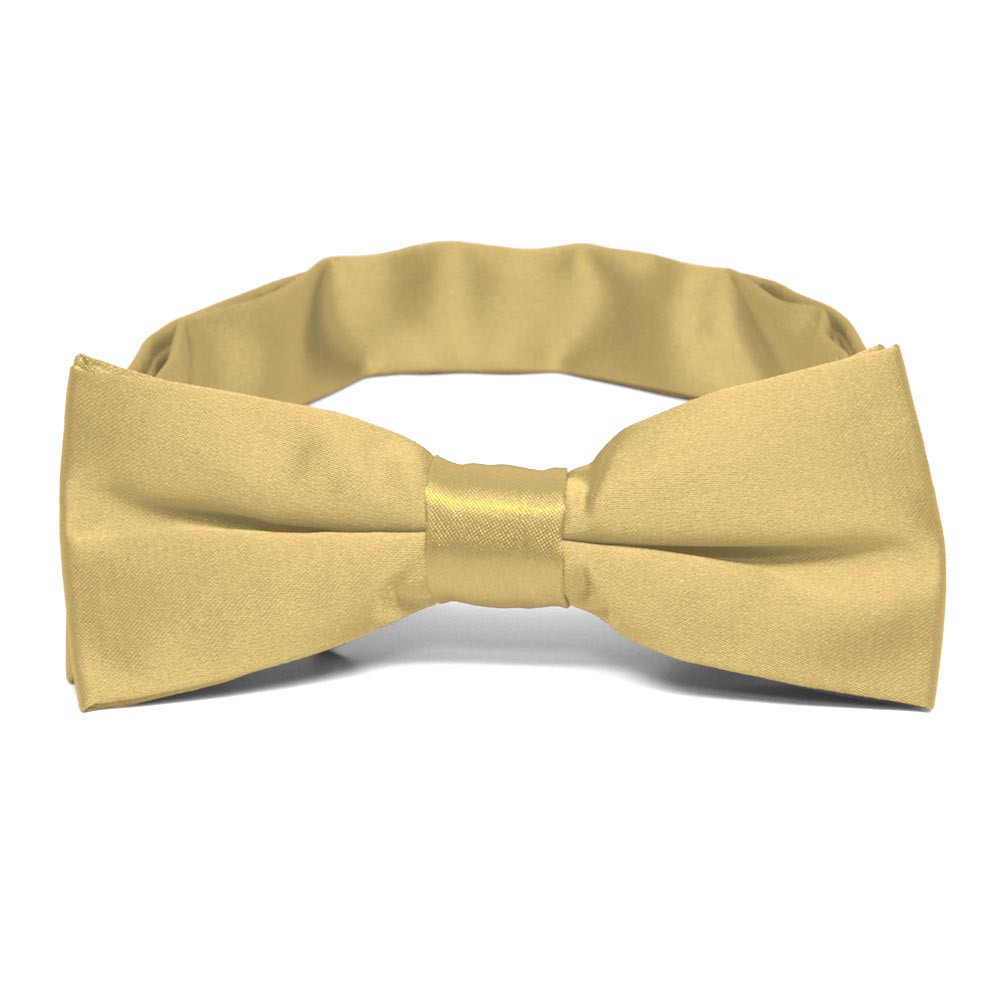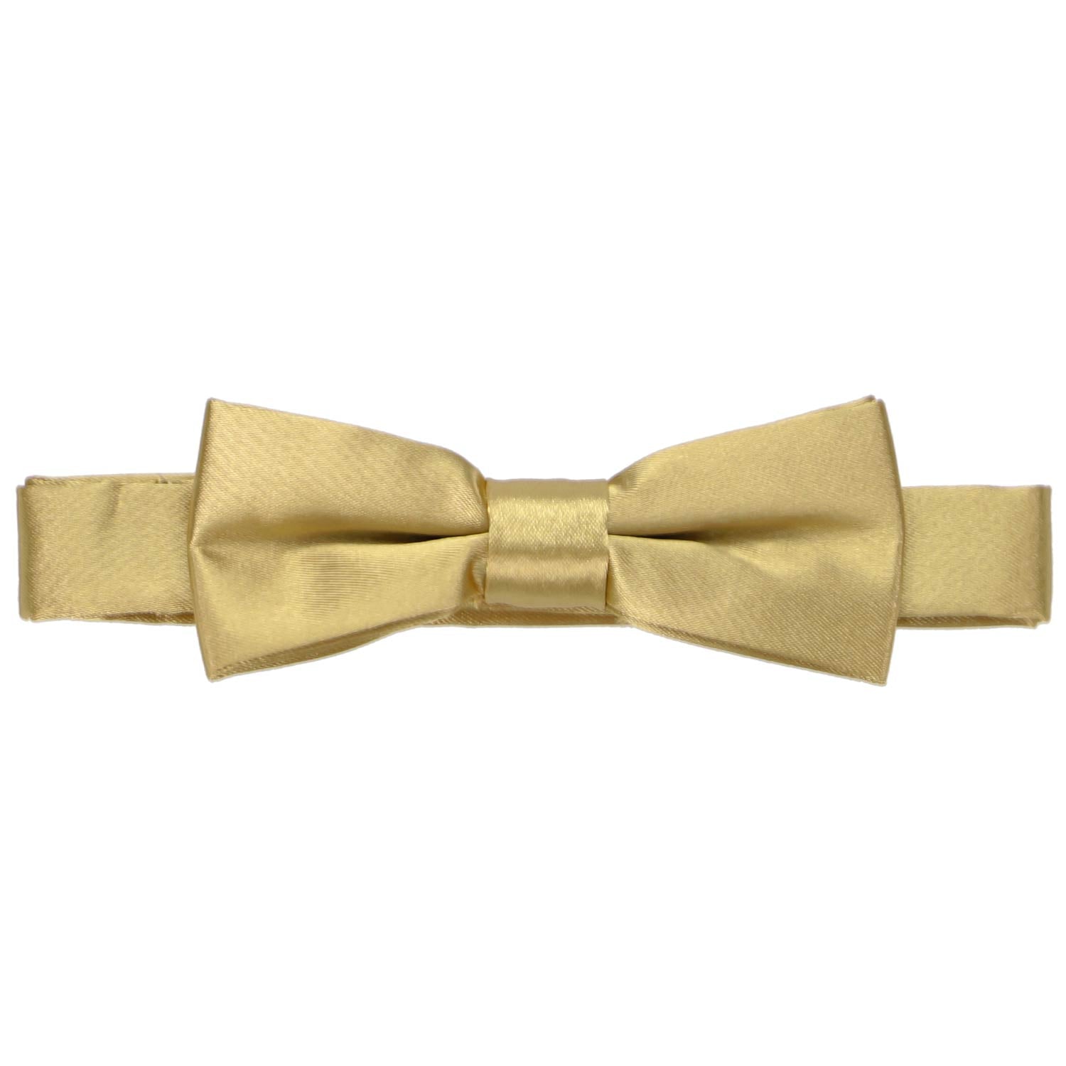 Brighten your little one’s outfit with this boys’ pale gold bow tie, a standout among our collection of gold shades. Perfect for holidays, formal events, school programs, or group occasions, this versatile bow tie adds a touch of sophistication while remaining fun and wearable. Its neutral, warm hue pairs with dress shirts, vests, and suits in nearly any shade. And yes, matching men's sizes are available for older siblings, dads, or groomsmen.