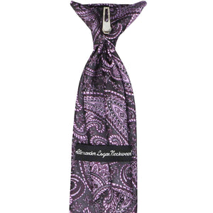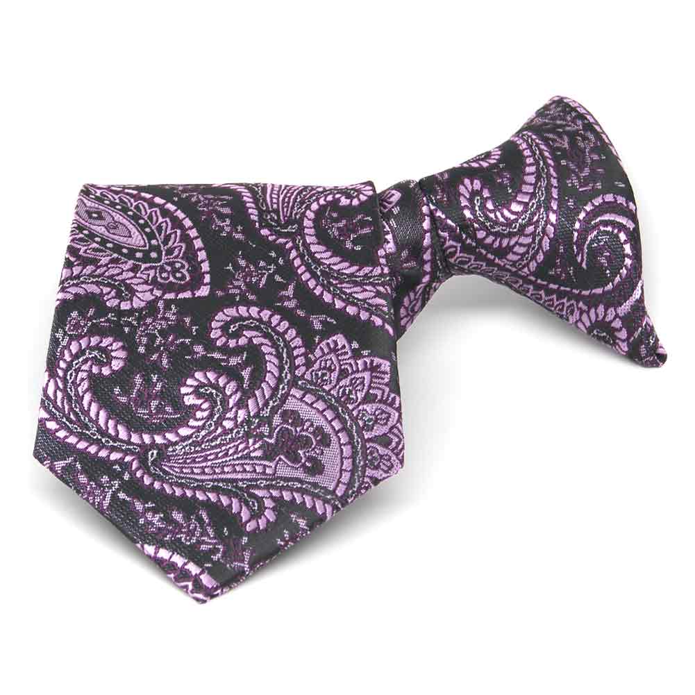 Ideal for a ring bearer or family photos, this boys' eggplant purple paisley clip-on tie is a stylish choice for fall and winter weddings and dressy occasions. The bold, classic pattern showcases multiple shades of purple, making it a perfect match for dusty purple wedding themes. It pairs effortlessly with black, gray, or navy suits for a sharp, coordinated look. Plus, with matching adult sizes available, it’s easy to create a cohesive ensemble for the whole group!