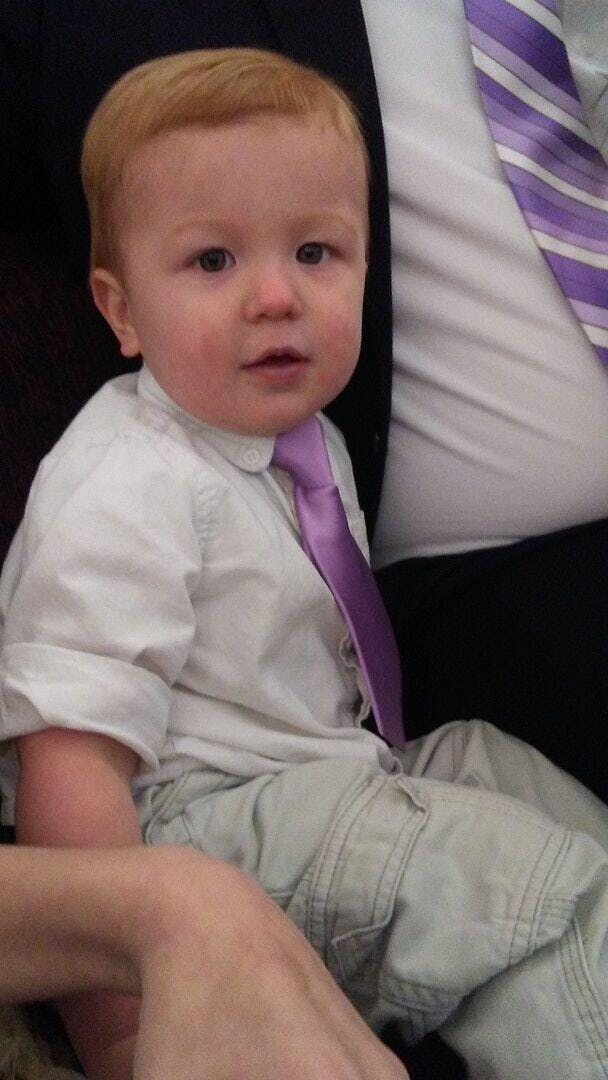 This boys' English lavender clip-on tie is easy to use and sized just right for your little guy. Available in an 8-inch length, these pre-tied ties are sized to fit most boys up to 1-year old. The clip on the tie simply attaches to the collar of the shirt, without any material around the child's neck. Matching adult sizes available.