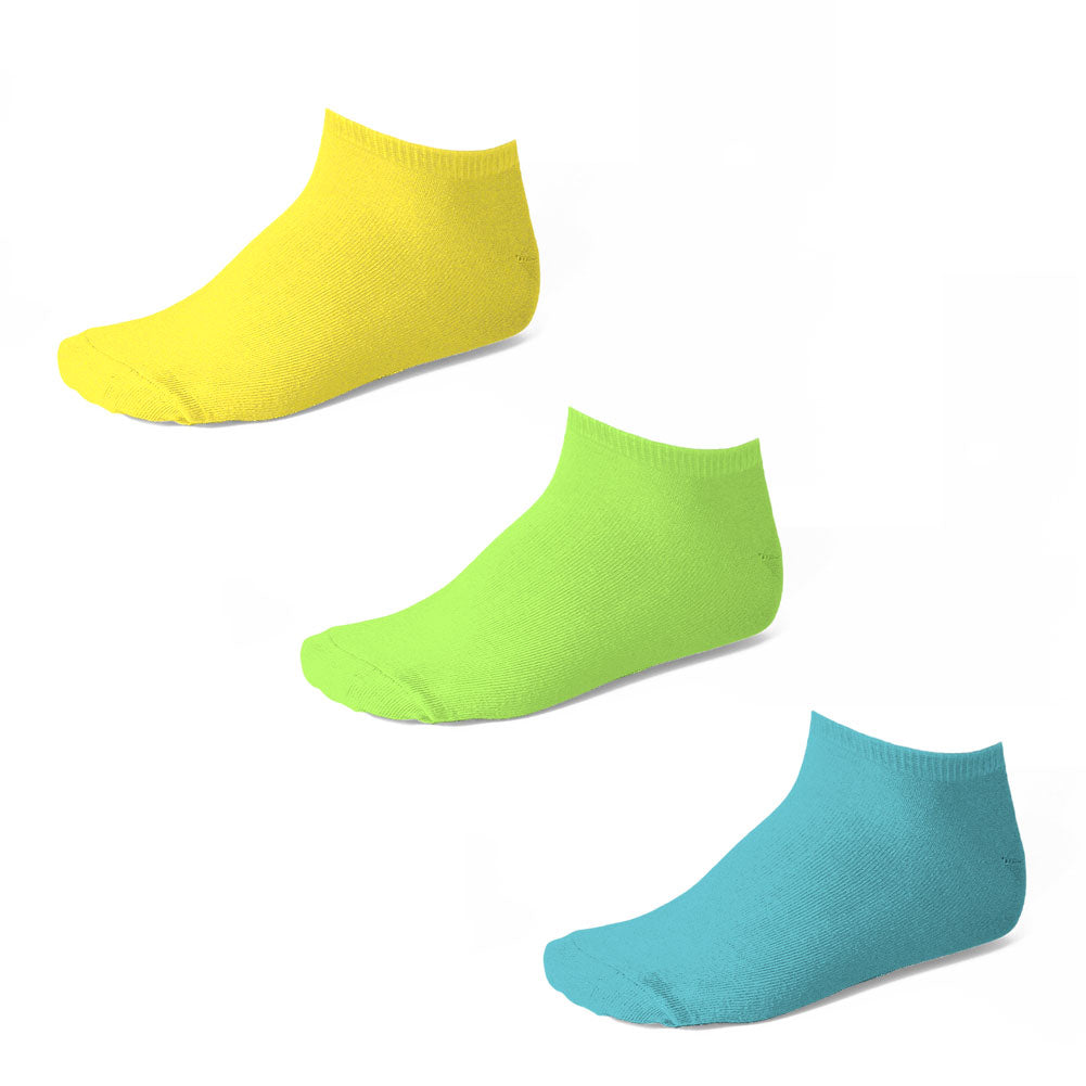 • Includes 3 pairs of socks: 1 yellow, 1 hot lime green and 1 turquoise