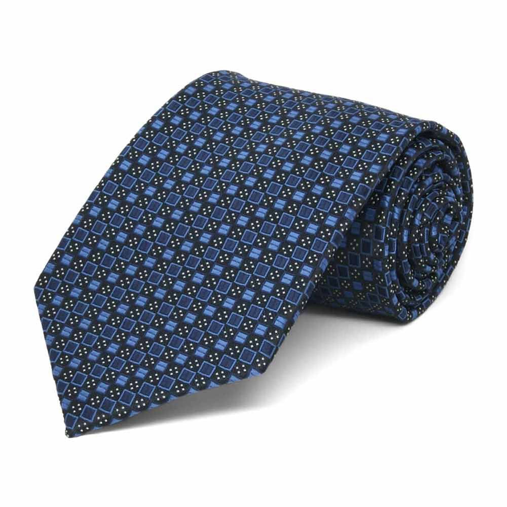 This boys' brilliant blue square pattern necktie is the ultimate choice for his dapper moments. It's a standard tie, providing the perfect opportunity for him to master the art of tying a knot. The eye-catching design and versatile blue hue make it as easy to match as a solid color necktie. Whether he's rocking a button down and slacks or stepping into a more formal navy blue suit, this tie guarantees a look of sophistication.