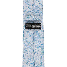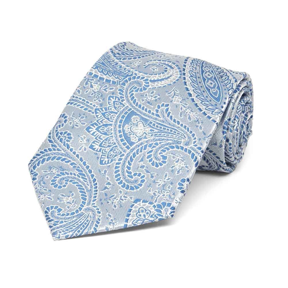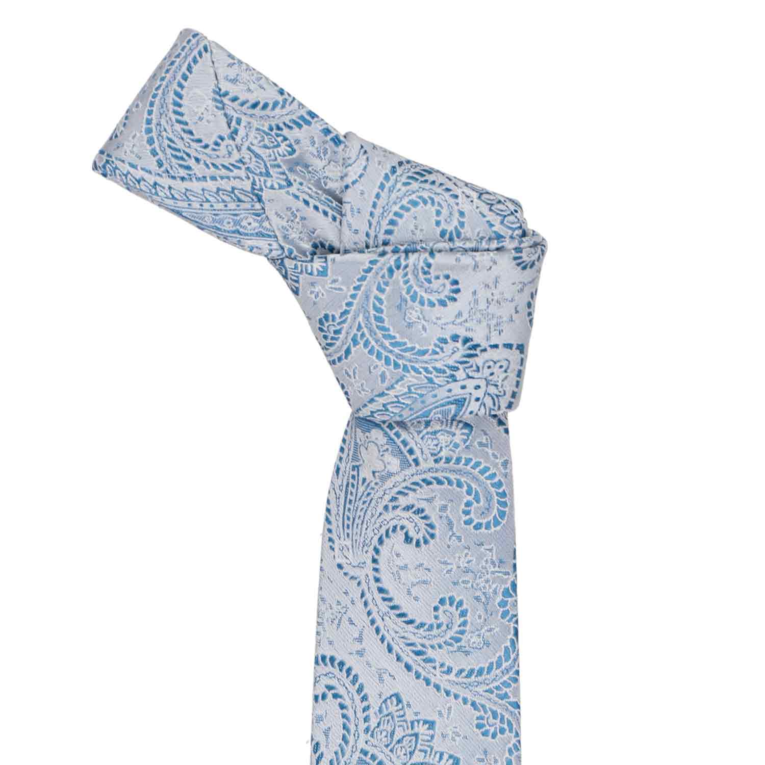 Boys' light blue paisley necktie, rolled to show pattern