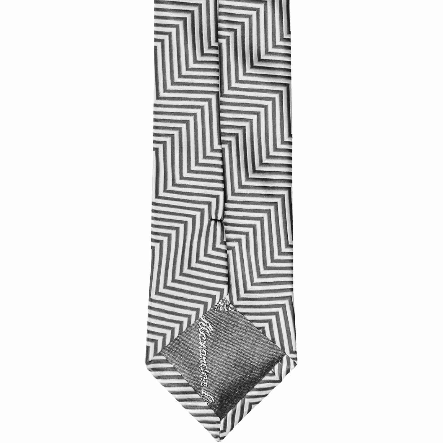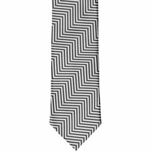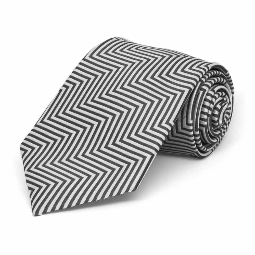 Upgrade his look with this stylish pewter chevron boys' necktie! The bold zigzag pattern adds a modern touch, while the gray and silver tones keep it sleek and sophisticated. Perfect for weddings, school events, or any special occasion, it pairs effortlessly with a dark suit or slacks and a crisp button-down shirt. Matching adult sizes and styles are available for creating a father-son look.
