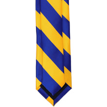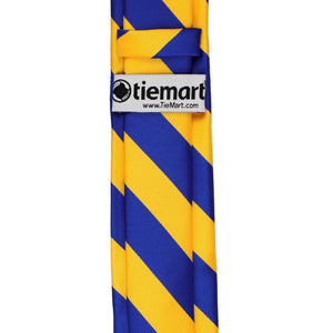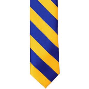 This royal blue and golden yellow striped tie is a perfect choice for school and team uniforms. The necktie is designed for most kids 8 to 13 years old (more details on sizing below) and must be tied by the wearer. (What a great age to teach him!) For a school with a range of ages, this striped combo comes in adult and teen sizes, as well.