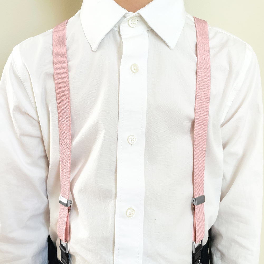He’ll look so charming in these kids’-sized blush pink suspenders. They’re perfect for a dressy special occasion and quite popular for ring bearers. (They come in men’s sizes for groomsmen, as well.) Don’t worry if you have more than one child to outfit. These suspenders are sized for babies, toddlers and older boys up to pre-teens. We designed these suspenders to go with our boys’ blush pink bow ties (sold separately), but the solid color design makes them easy to pair with other colors or patterns! The straps are stylish in a skinny, half-inch size.