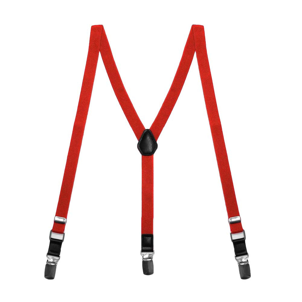 What a classic look for your little guy! Complete his dressed up look with these kids’ red skinny suspenders. They feature stylish, half-inch straps that are skinny but versatile for any occasion, from Christmas to a Valentine’s Day class party. While a tie is not included, most pair them with our boys’ red, black or white bow ties. They’ll also look great with a patterned tie! Finish his outfit with a white button down and dress pants or denim.