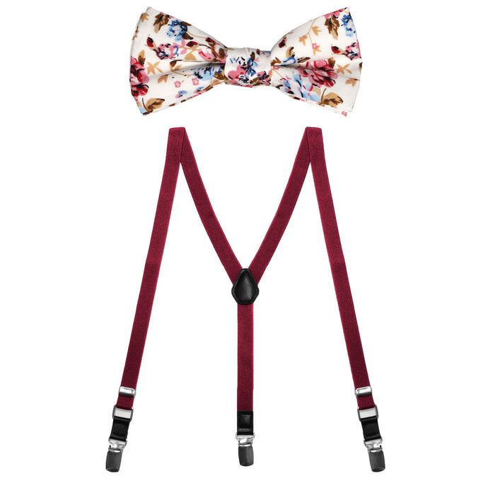 Boys' Burgundy Floral Bow Tie and Suspenders Set