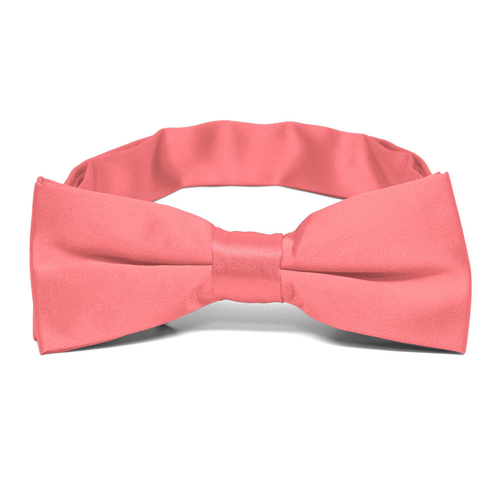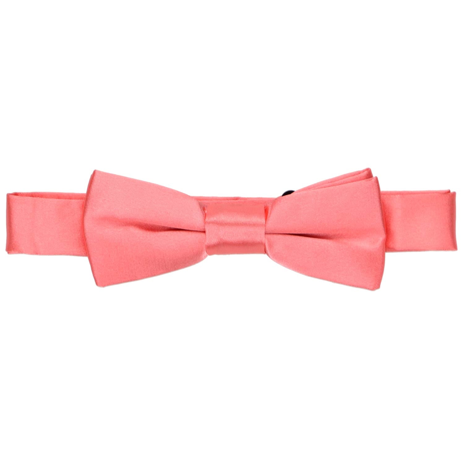 A charming boys' coral bow tie sized just right for your little guy. The bow tie is pre-tied and features a safe and easy-to-use hook-and-eye closure. Measuring 4-inches across and 1.5-inches tall, this bow tie is sized for most boys from baby to 10-years old.