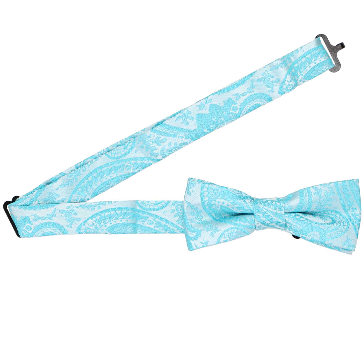 Let your young gentleman stand out with this vibrant turquoise paisley boys' bow tie! The bold, bright pattern adds a fun pop of color, while the classic design keeps it timeless and stylish. Perfect for any occasion—whether it's a wedding, family gathering, or school event—this versatile bow tie pairs effortlessly with a variety of suits, making it an easy go-to accessory for dressing up.