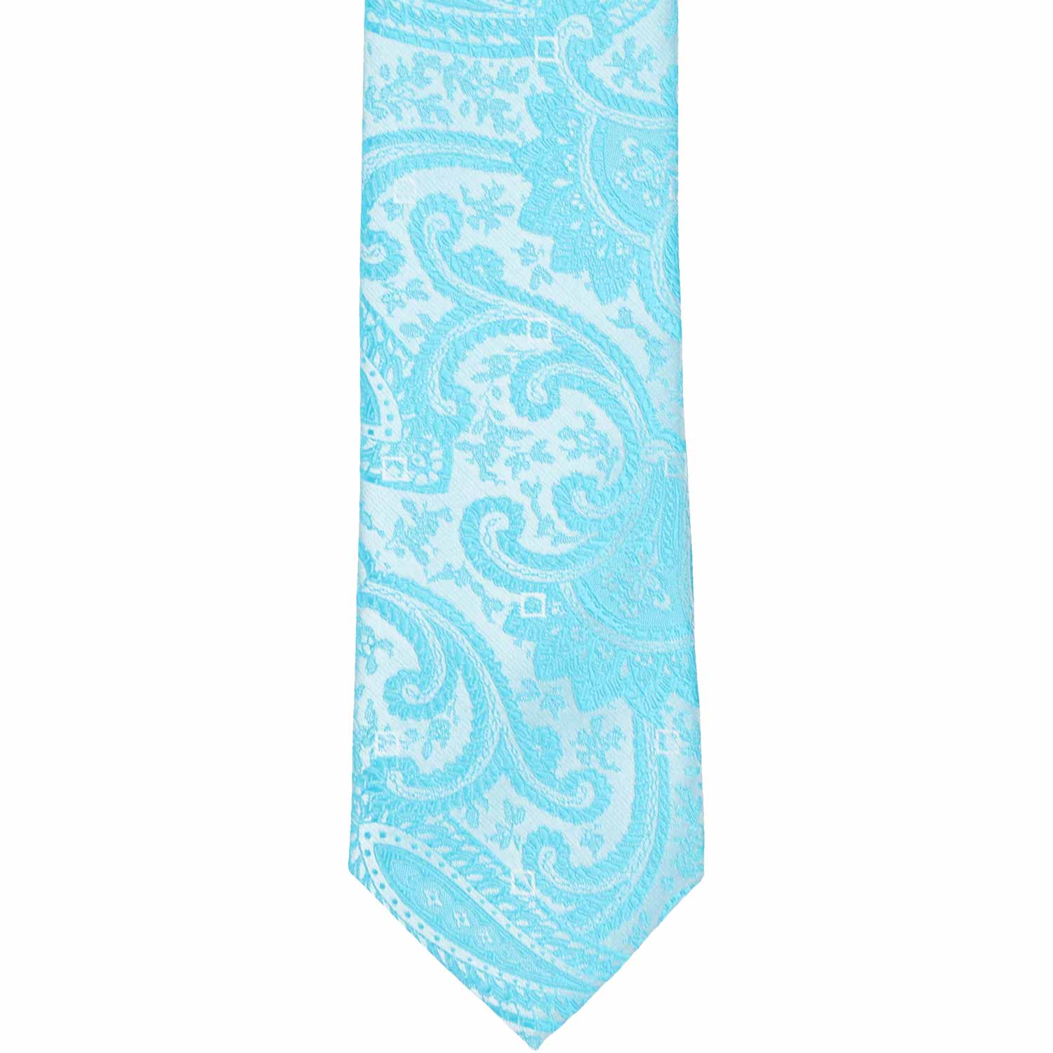 Bring a pop of color to his look with this vibrant turquoise paisley boys' tie! Perfect for spring celebrations or a beachy destination wedding where he's the ring bearer, the bold yet classic tone-on-tone pattern adds a playful touch while remaining timeless. It pairs effortlessly with a variety of outfits, from casual button-downs to formal suits. For a coordinated finish, men's sizes and styles are available.