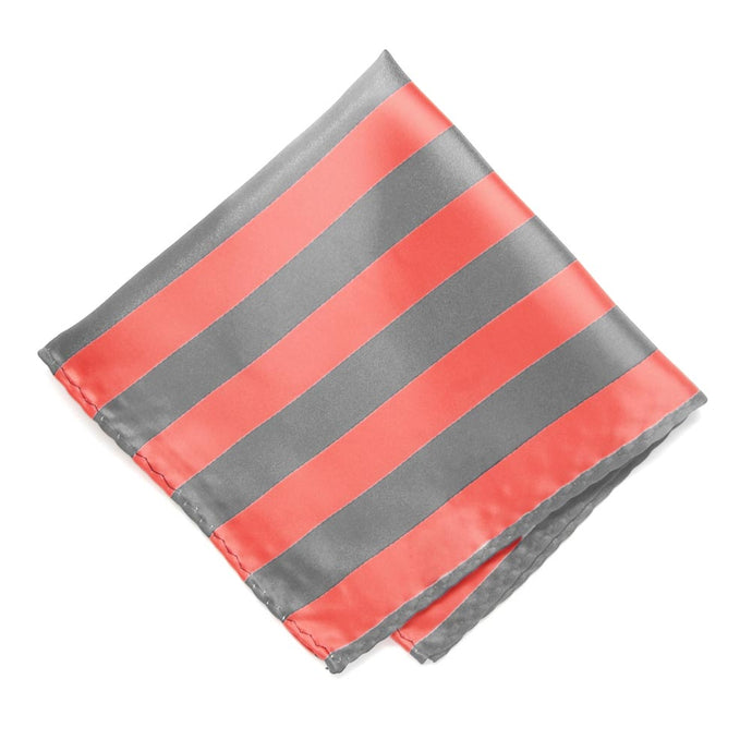 Bright Coral and Gray Striped Pocket Square
