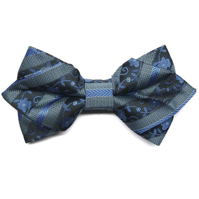 Brilliant Blue Anna Floral Stripe Diamond Tip Bow Tie