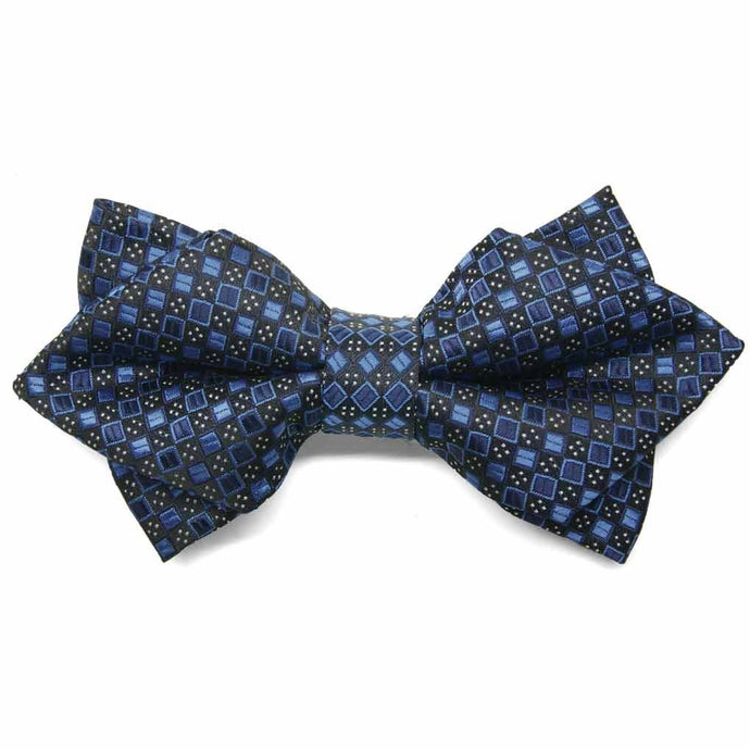 Brilliant Blue Marie Square Pattern Diamond Tip Bow Tie