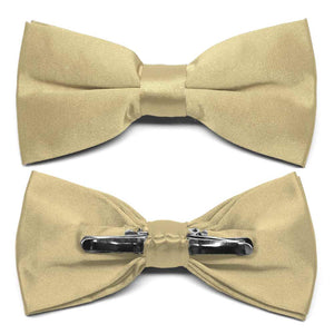 Wear a perfect bow every time with this sparkling champagne clip-on bow tie. This pre-tied bow features a heavyweight clip that discretely attaches to either side of your shirt collar material for a secure fit. One size fits all, regardless of neck size. Has a shiny, satin look. Matching pocket squares available.