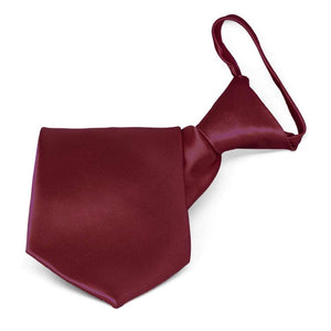 This boys' burgundy zipper tie features a pre-tied knot that, when worn, will look like a standard necktie. However, a zipper in the tie tail allows the collar to quickly expand and fit over the head without having to tie a knot. These zipper ties are available in an 11-inch or 14-inch length for boys ages 2 to 10-years old.