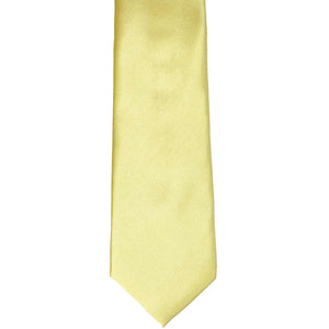 Welcome spring with this light and bright butter yellow boys' necktie! This classic solid color is perfect for adding a soft, cheerful hue to his outfit. It's an ideal choice for Easter Sunday or outfitting junior groomsmen for a sunny wedding. Wherever he's headed, try pairing it with navy blue or gray attire and watch the color truly shine. He'll look polished and feel proud when he ties the tie himself, achieving a truly authentic, grown-up style.