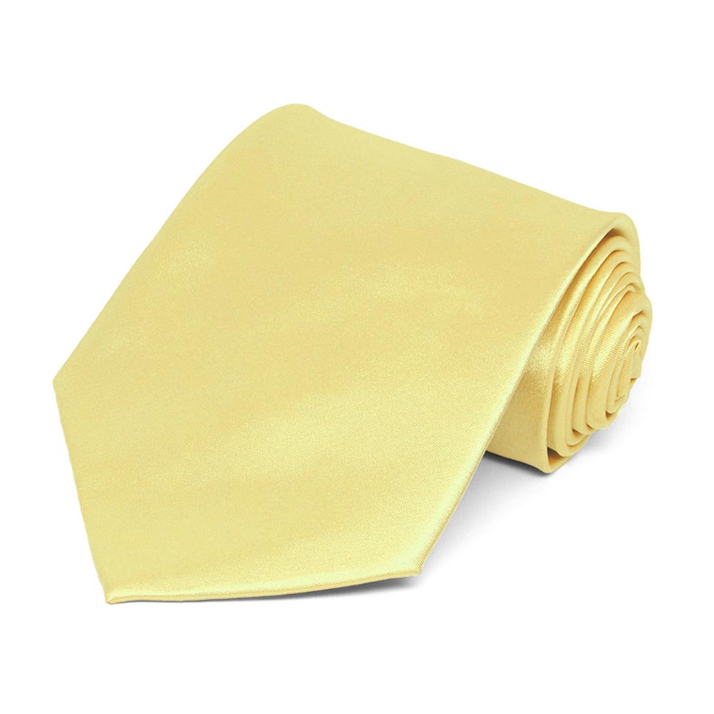 Your staff will make an impression in this butter yellow tie. The 3.25-inch width complements both men and women and the 58-inch length is standard-sized to fit most adults. These butter yellow ties are made from a durable, all polyester material with a satin finish for a slightly shiny look.