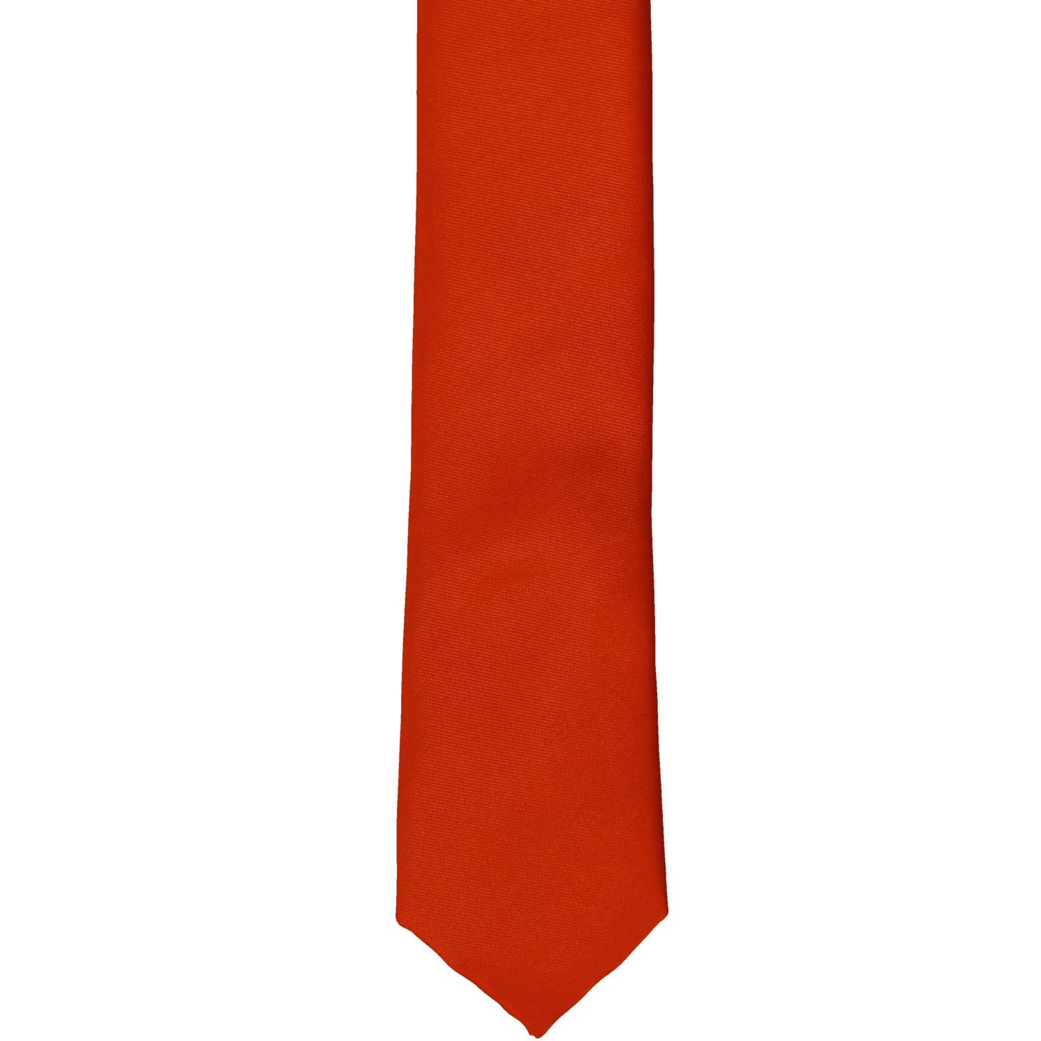These skinny red ties are made from a durable, all polyester material with a very light satin finish. The color is a classic, primary red.