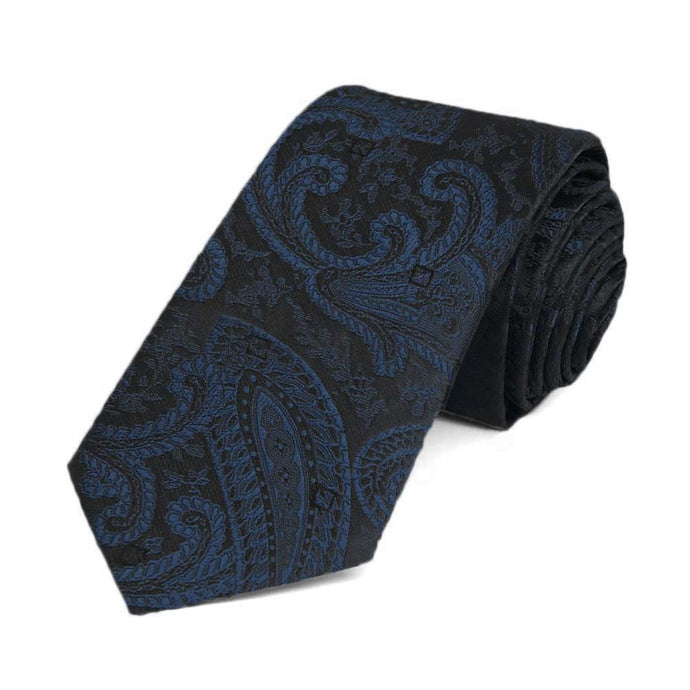 Navy Blue Clara Paisley Slim Necktie, 2.5" Width