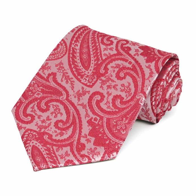 Bright Fuchsia Clara Paisley Slim Necktie, 2.5" Width