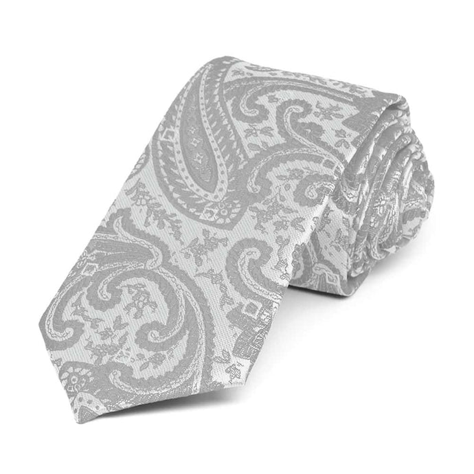 Mercury Silver Clara Paisley Slim Necktie, 2.5" Width