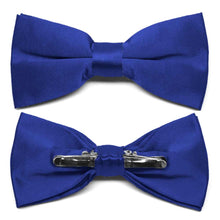 Wear a perfect bow every time with this sapphire blue clip-on bow tie. This pre-tied bow tie features a heavyweight clip that discretely attaches to either side of your shirt collar material for a secure fit. One size fits all, regardless of neck size. Has a shiny, satin look. See related products below for a matching cummerbund and pocket square.