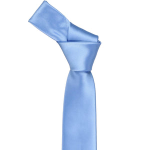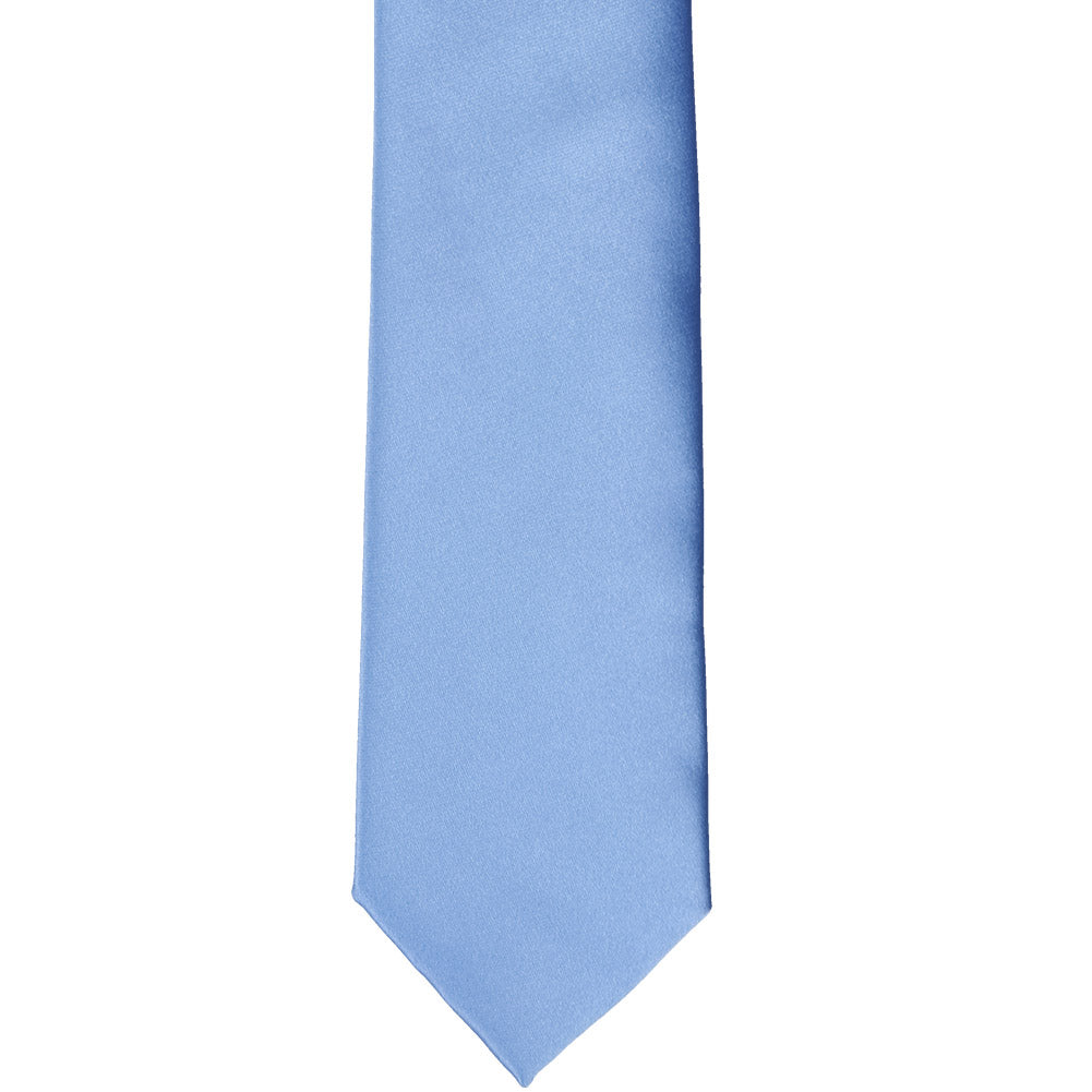 Front view of a cornflower blue slim tie