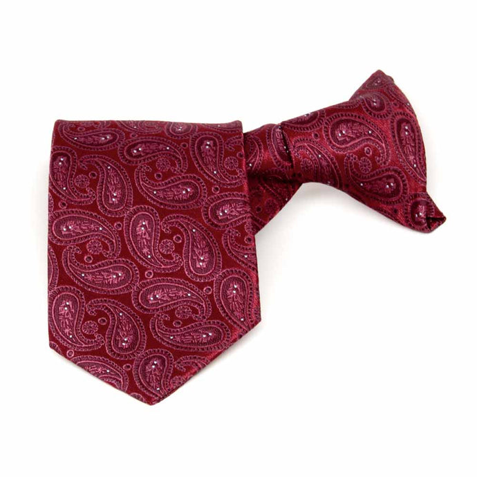 Boys' Crimson Red Marie Square Pattern Clip-On Tie