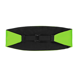 The back of a hot lime green cummerbund, including the black elastic strap and closure