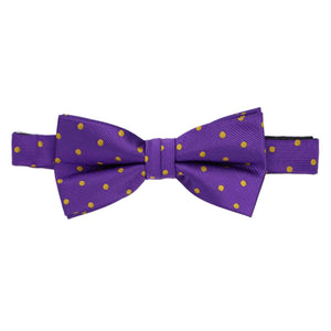 This dark purple and gold polka dot bow tie is the one! Versatile, eye-catching and not too flashy, it's ideal for any occasion—whether you're at the office, cheering on your team at a game or leading a Mardi Gras parade. And for those more formal occasions, don't forget to add the matching pocket square (sold separately) to complete your ensemble