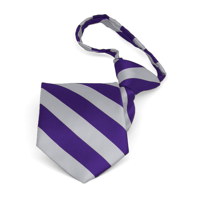 Boys' Dark Purple and Silver Striped Zipper Tie