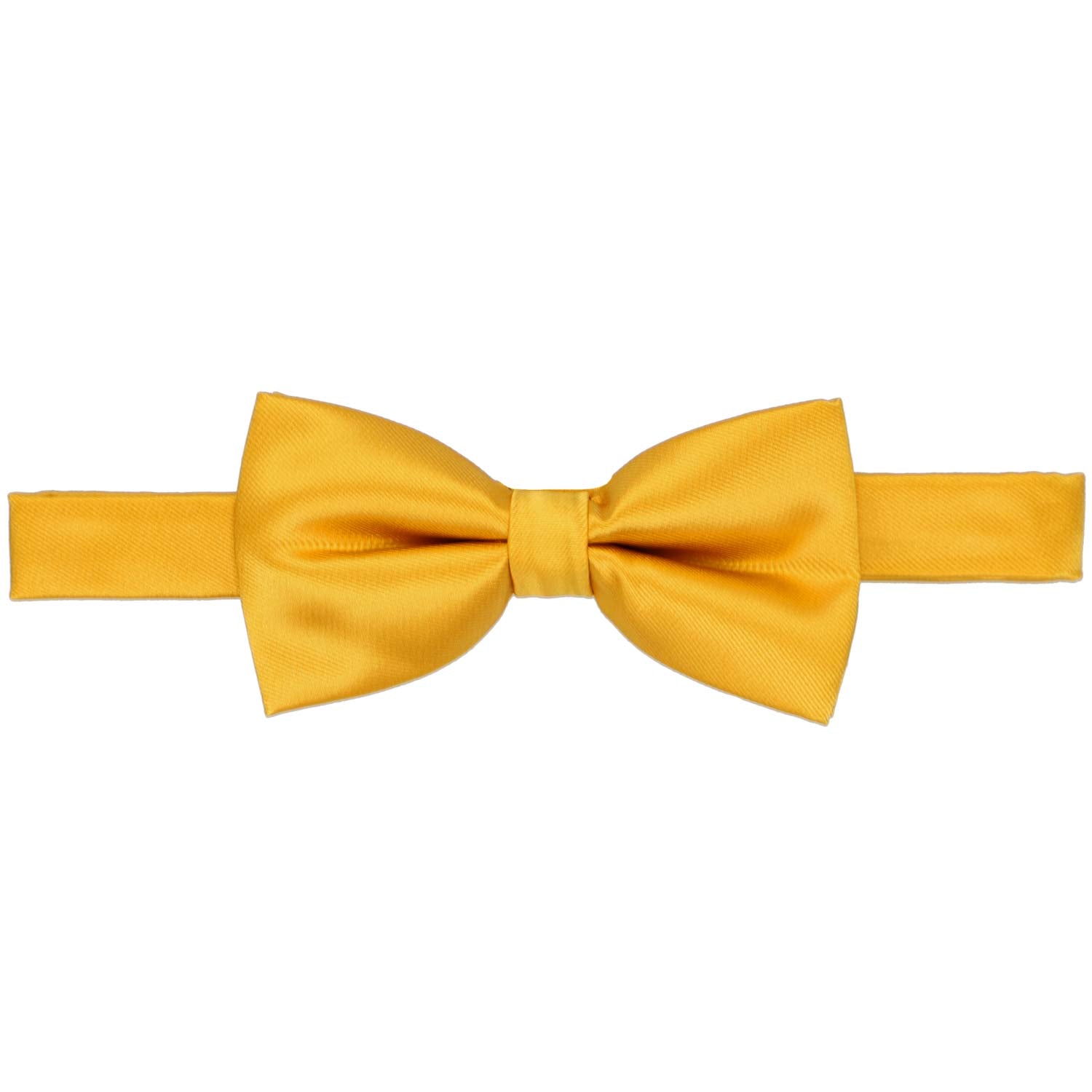 This golden yellow bow tie is a versatile choice for uniform wear. While we describe the shade as a dark yellow, its subtle golden undertones often complement school and company colors labeled as "gold." We offer this color in various tie styles, including neckties, pre-tied ties and even children's sizes, making it easy to coordinate within a group. Matching pocket squares are sold separately for formal occasions.