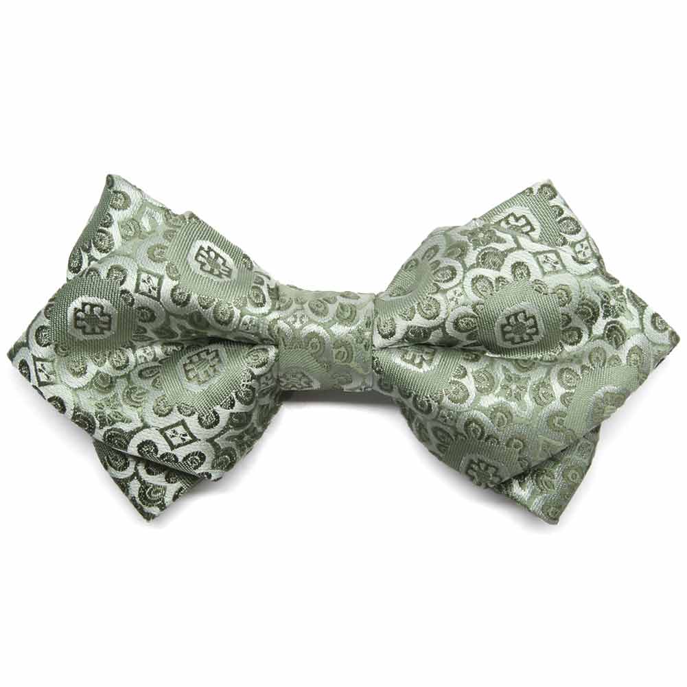 A wedding favorite, this diamond tip bow tie is the perfect accessory to complement your special day. The soft minty green hue, paired with a delicate abstract floral design, creates a fresh and elegant look that effortlessly enhances bridesmaid dresses. Versatile enough to pair with nearly any suit color, this bow tie elevates your groomsmen's look, especially when matched with gray or navy blue suits. For a flawlessly coordinated appearance, don’t forget the matching pocket squares to complete everyone’s ensemble!