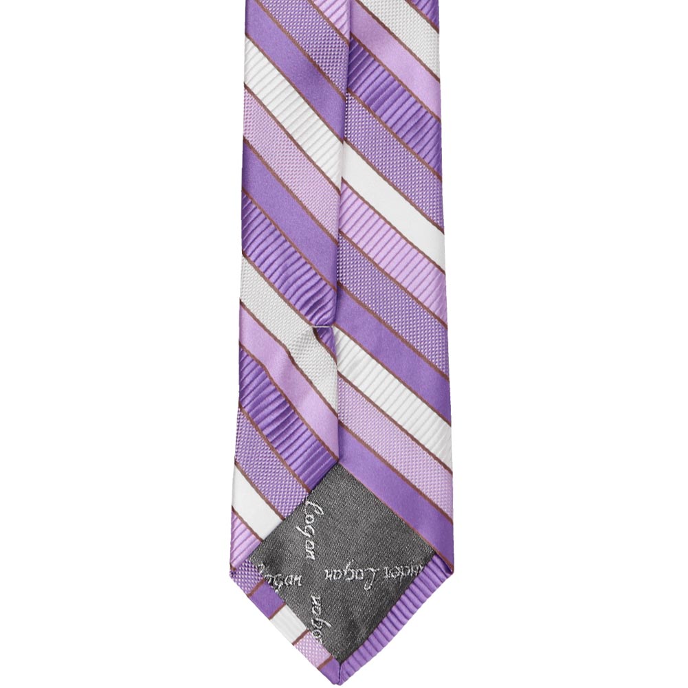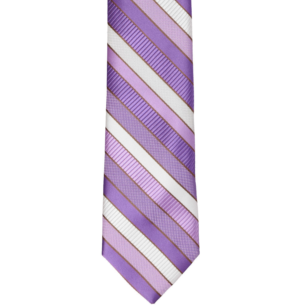 Celebrate Easter and the arrival of spring with this thistle purple slim tie that combines the best of stripes and patterns. Take a closer look—the purple and white stripes vary between solids, textures, and ribbing, adding a playful touch to its classic design. Perfect for warm-weather events like Easter gatherings, weddings, or even a day at the office, this tie is as versatile as it is eye-catching. Not usually a purple fan? This tie might just change your mind, pairing effortlessly with black, gray, navy, or even brown suits.