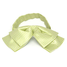 Exclusively ours! A pre-tied apple green floppy bow tie in a trendy skinny chevron stripe design. The band collar adjusts to fit most men and women. Suited for matching women's uniform wear or men's vintage-inspired attire.