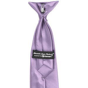 Say hello to springtime in this boys' lavender clip-on tie. This is a pre-tied necktie that's easy to put on and go. (The clip attaches to the top of the shirt collar without any material around the neck.) The color is a top choice for boys' dressy Easter attire. Put together a matching family look. This tie comes in a self-tie style for older boys as well as various styles for dad.