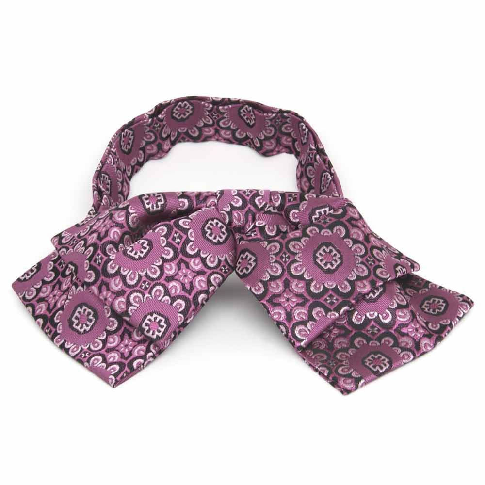 Exclusively ours! A pre-tied, deep magenta floppy bow tie in a unique and subtle, floral-like design. The band collar adjusts to fit most men and women. Suited for matching women's uniform wear or men's vintage-inspired attire.