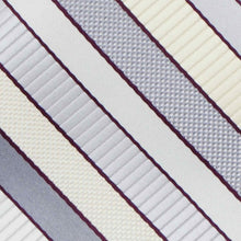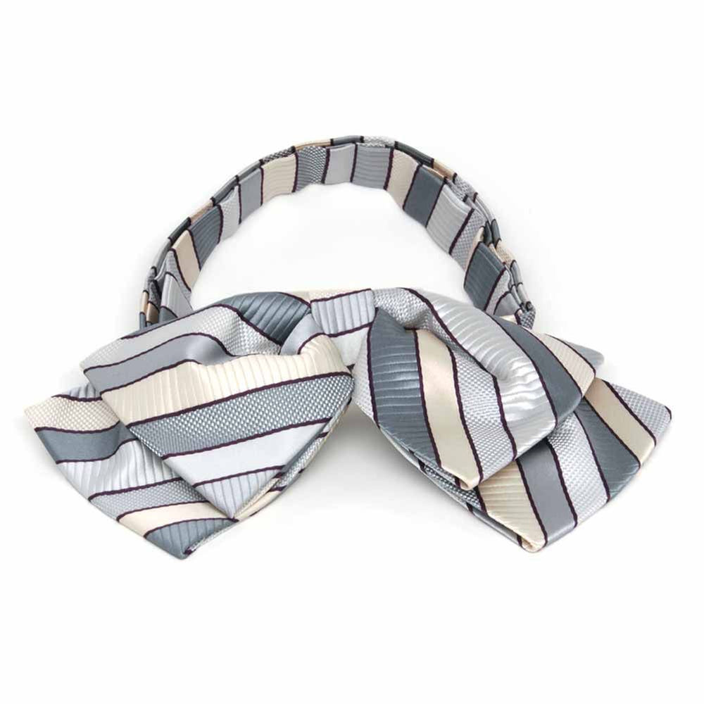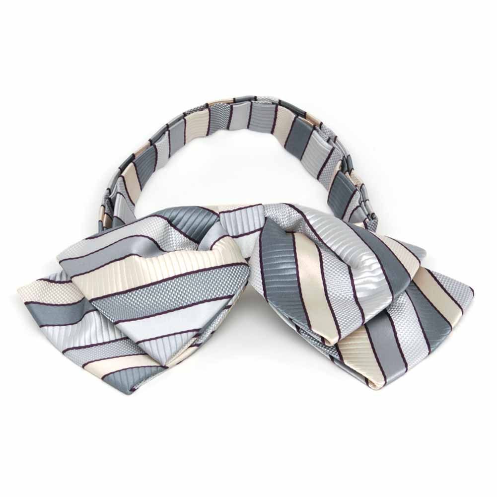 Exclusively ours! This pre-tied, light silver floppy bow tie features a detailed textured stripe design. The band collar adjusts to fit most men and women. Suited for matching women's uniform wear or men's vintage-inspired attire.